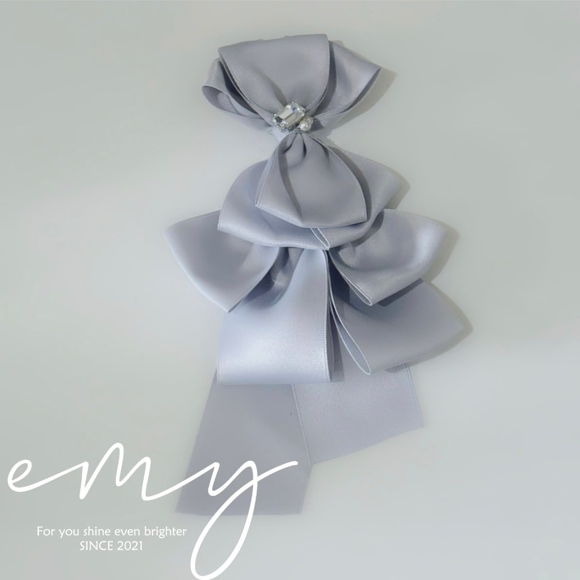 リボンブローチ コサージュ グレー クリスタル