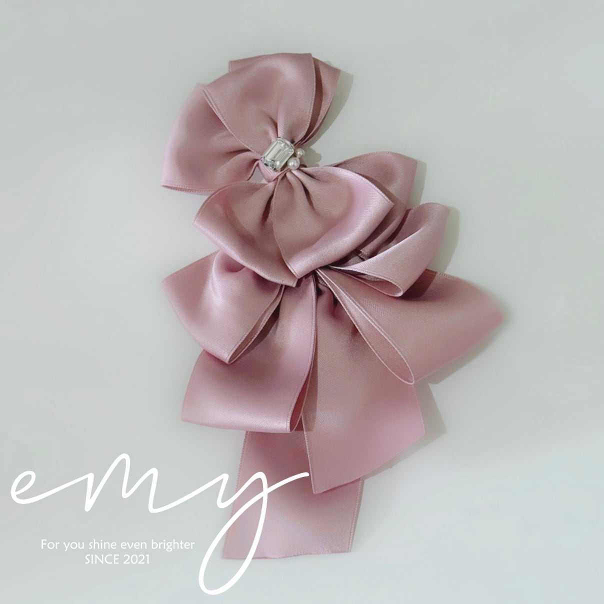 リボンブローチ コサージュ ピンク クリスタル