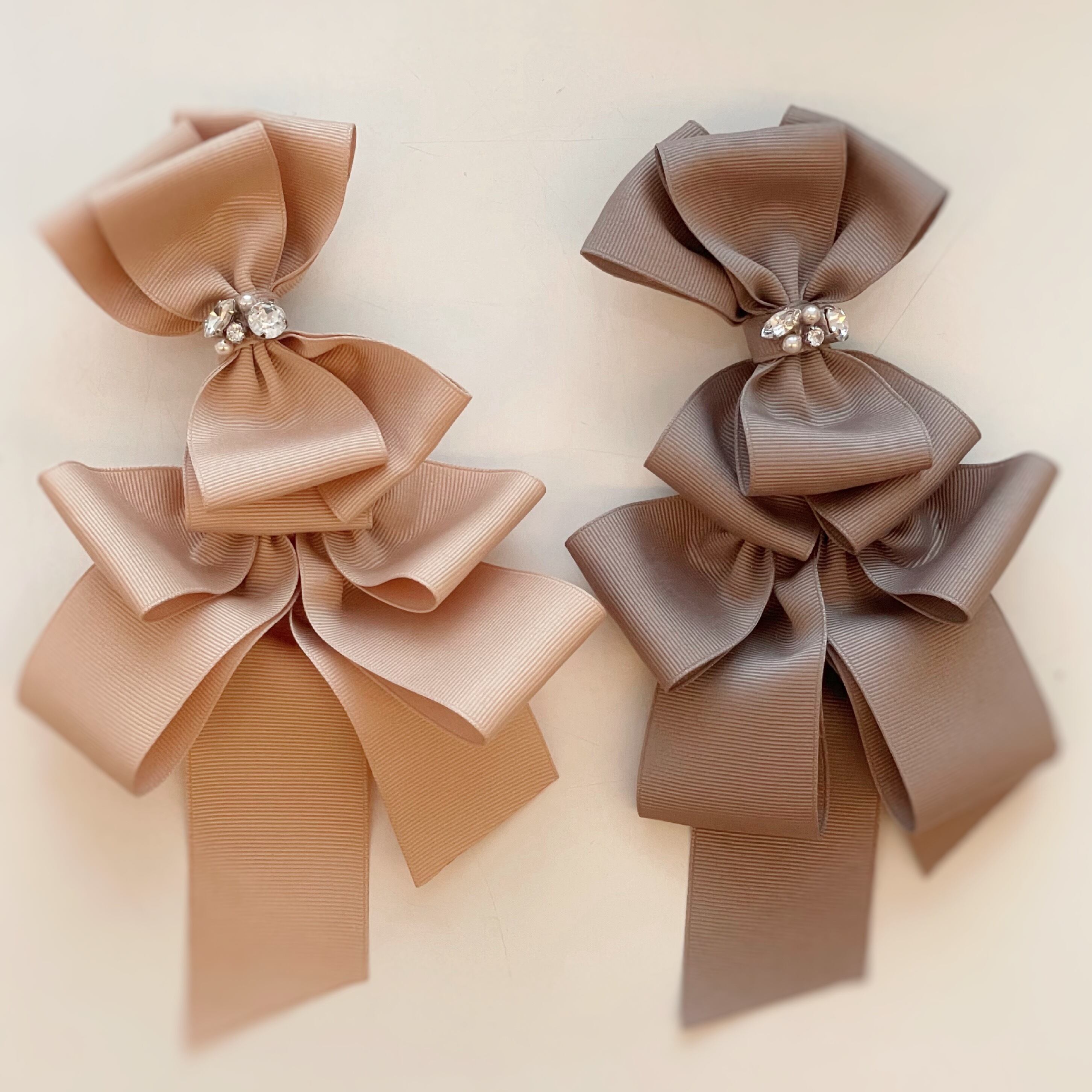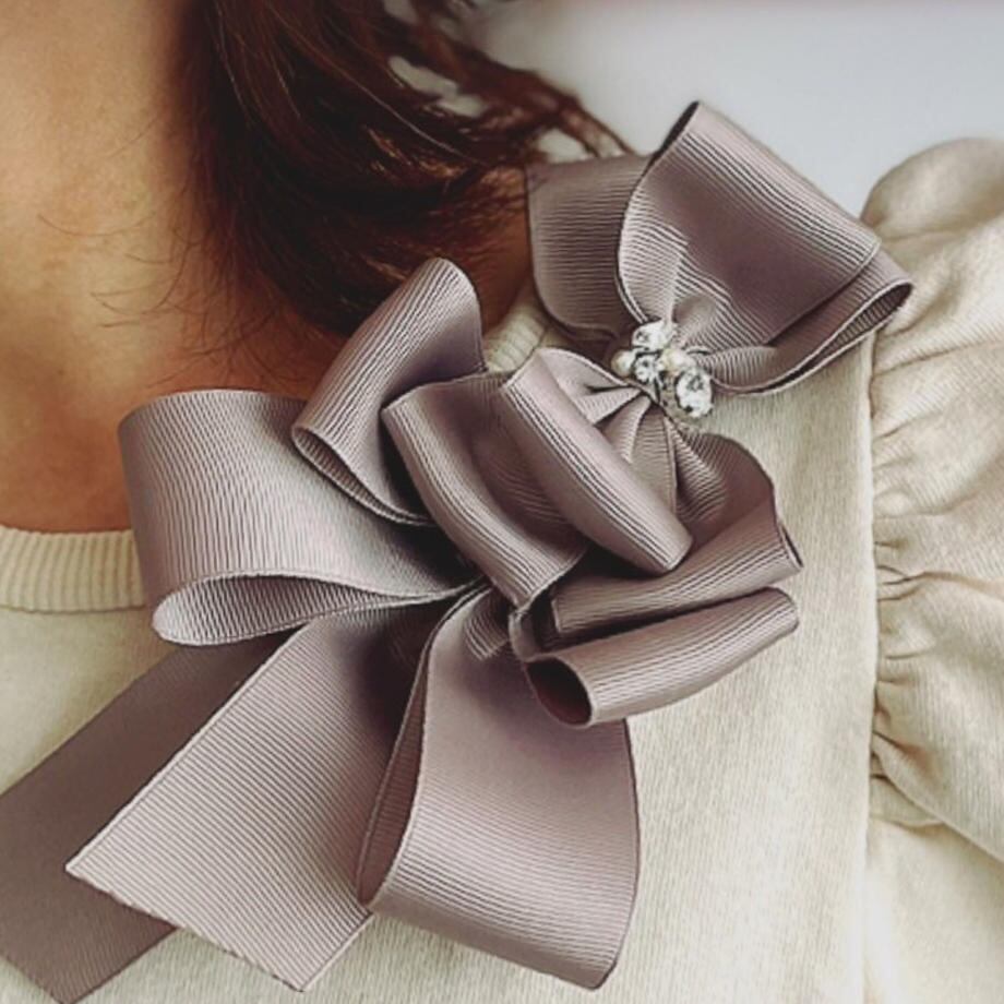 大きめのリボンブローチをプラスするだけでおしゃれ女子 に♪
