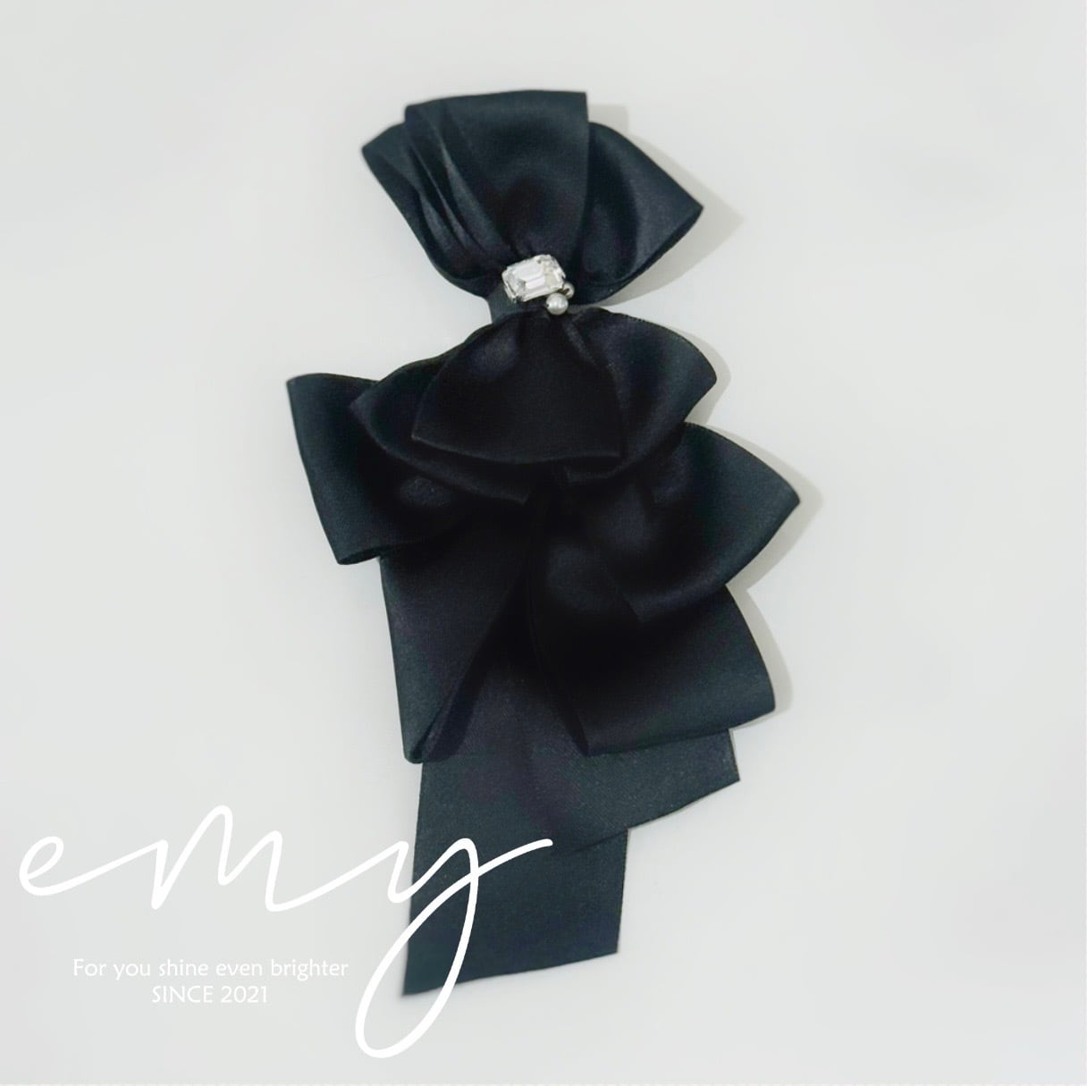 リボンブローチ コサージュ ブラック クリスタル